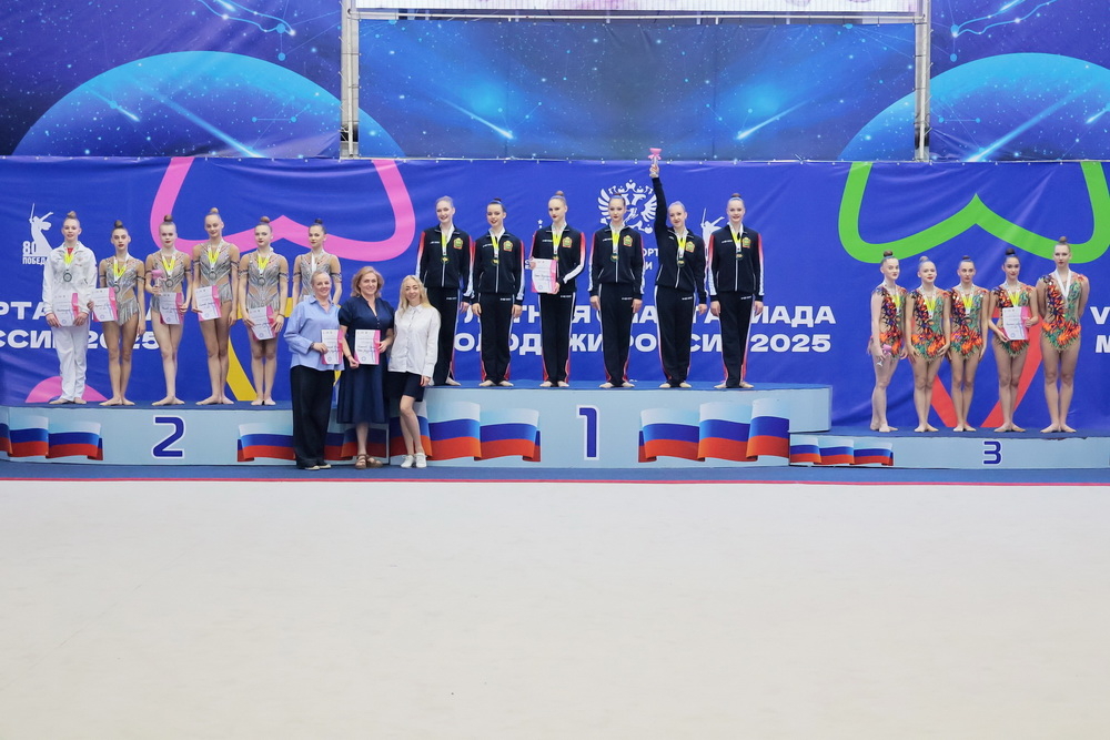 Девушки показали групповые упражнения по программе МС с тремя мячами и двумя обручами, с пятью лентами, по программе КМС спортсменки выступили с пятью обручами, пятью булавами.