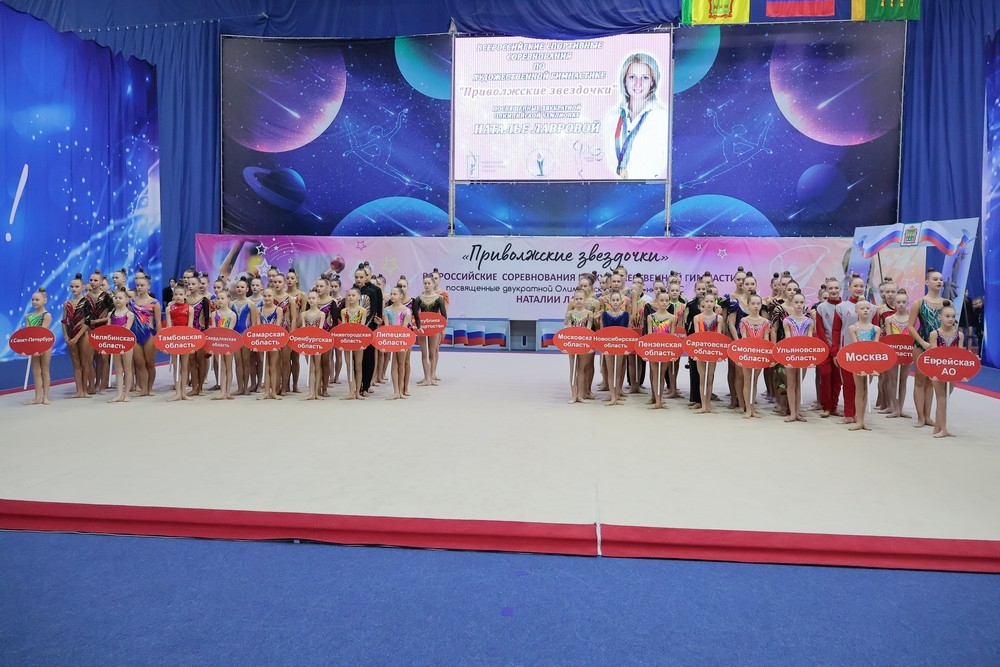 Сегодня состоялось торжественное открытие Всероссийских соревнований по художественной гимнастике "Приволжские звездочки", посвященных двукратной Олимпийской чемпионке, Заслуженному мастеру спорта спорта России Наталье Лавровой.